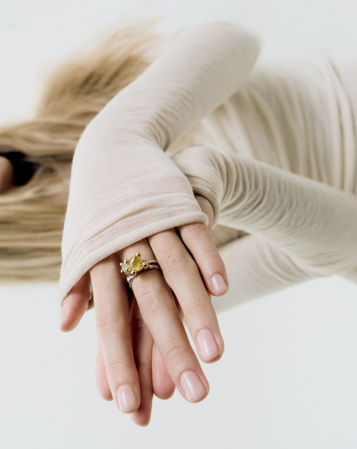 white and yellow gold create a restrained backdrop, highlighting the gemstones.