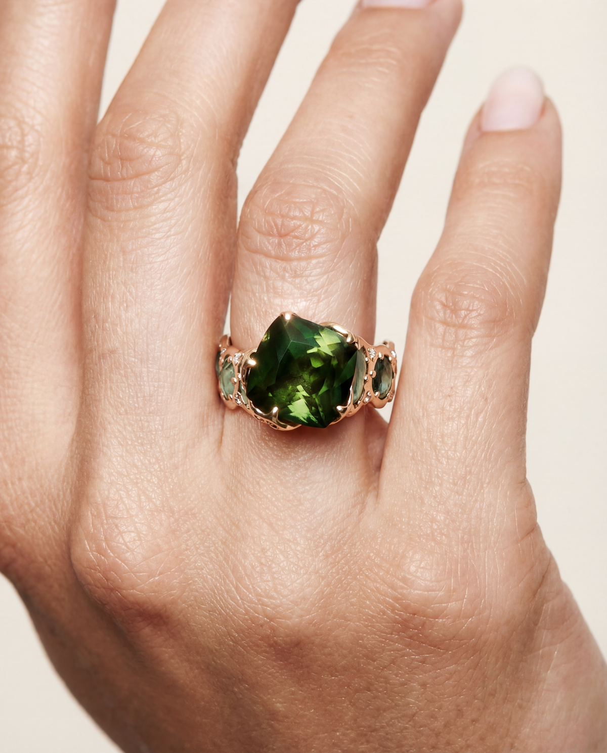 In ancient lore, green tourmaline was believed to be a bridge between the earth and the heavens, channeling the grounding energy of the earth while uplifting the spirit. Its energy harmonizes the heart, promoting compassion for oneself and others, and fostering a sense of wholeness. To wear green tourmaline is to carry a piece of nature’s wisdom, a reminder to nurture your soul, grow with the seasons of life, and stay connected to the beauty and healing power of the earth.