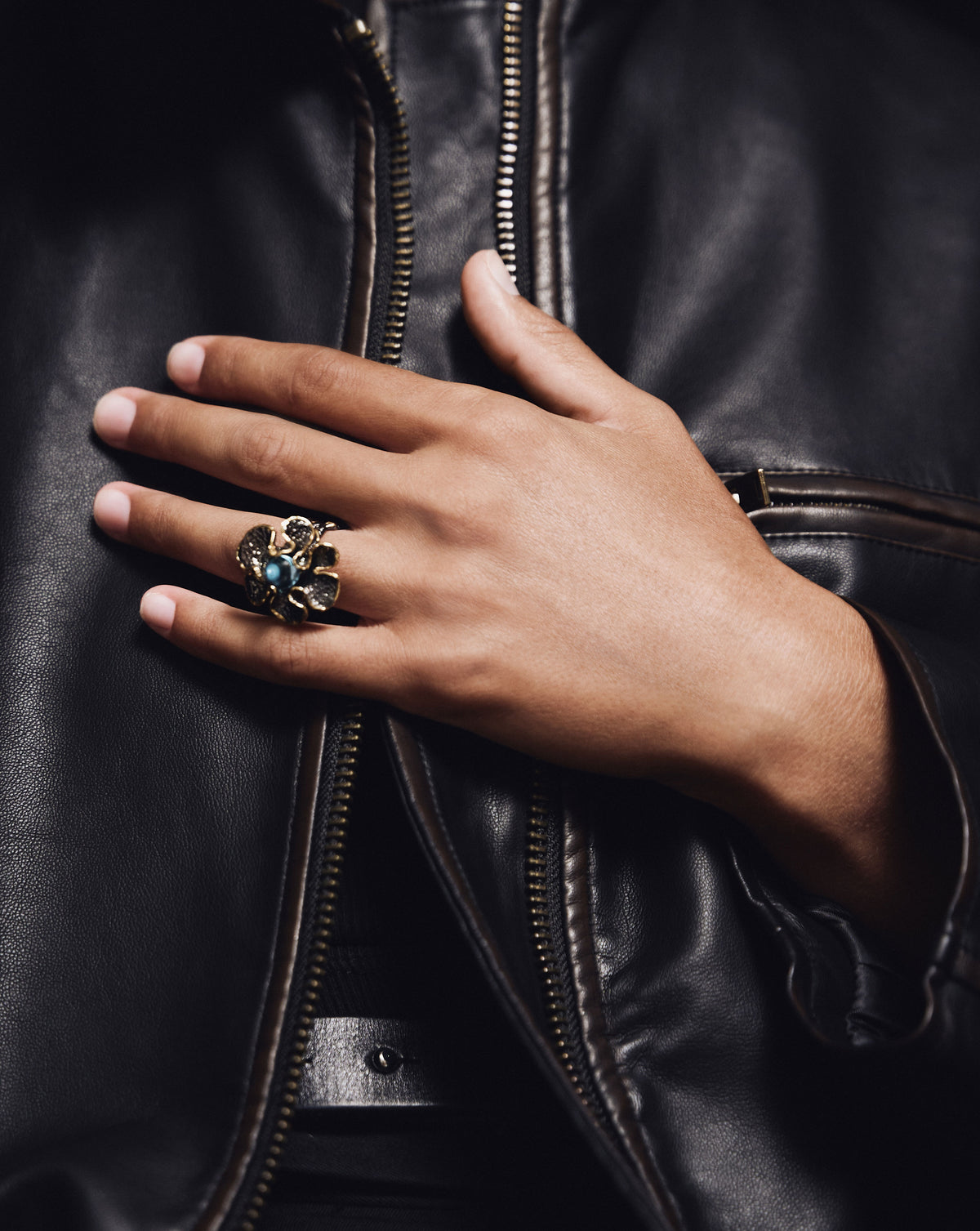 made of gold vermeil, covered with black rhodium, topaz, diamonds