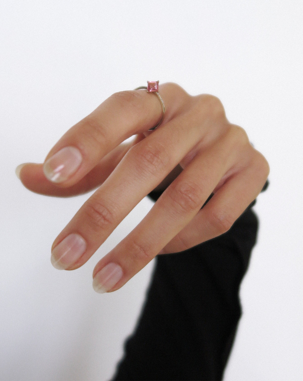 легенда каже, що Турмалін пройшов крізь веселку і повернувся, несучи її спектр. Inclina зберігає цей слід — рожевий у русі, що м’яко нахиляється до рівноваги.
